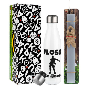 Fortnite Floss Like a Boss, Easter candle, metallic white thermos bottle (500ml) & aromatic flat candle (30cm) (GRAY)