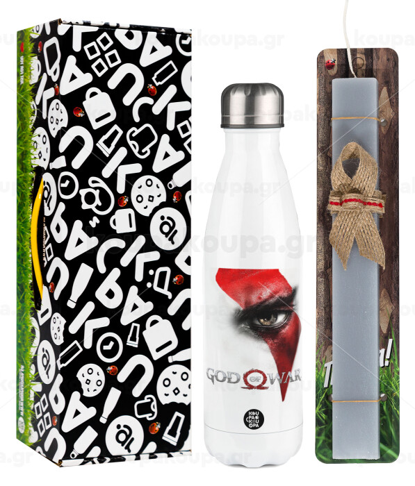 God of war Stratos, Easter candle, metallic white thermos bottle (500ml) & aromatic flat candle (30cm) (GRAY)