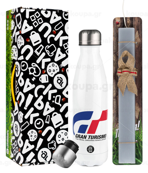 gran turismo, Easter candle, metallic white thermos bottle (500ml) & aromatic flat candle (30cm) (GRAY)