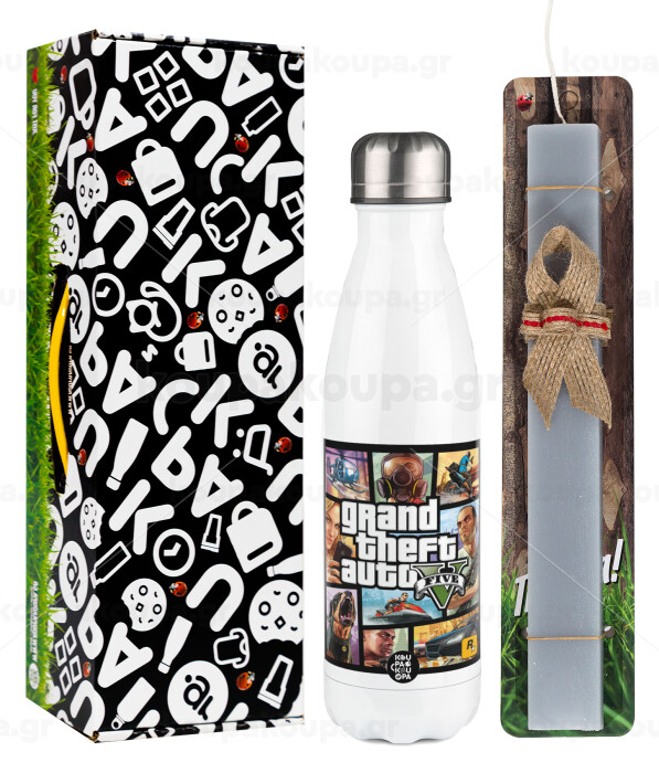 GTA V, Easter candle, metallic white thermos bottle (500ml) & aromatic flat candle (30cm) (GRAY)