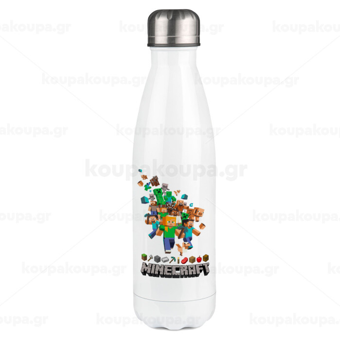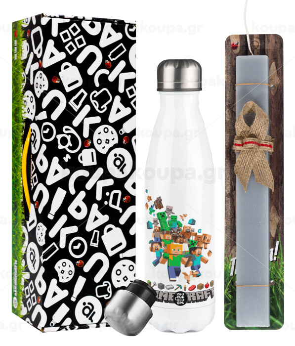 Minecraft adventure, Easter candle, metallic white thermos bottle (500ml) & aromatic flat candle (30cm) (GRAY)