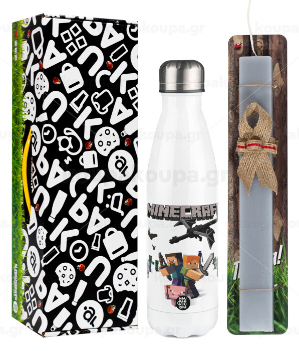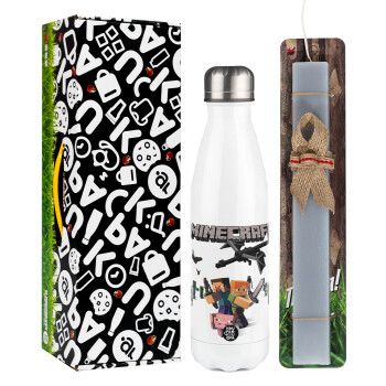 Minecraft Alex, Easter candle, metallic white thermos bottle (500ml) & aromatic flat candle (30cm) (GRAY)