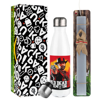 Red Dead Redemption 2, Easter candle, metallic white thermos bottle (500ml) & aromatic flat candle (30cm) (GRAY)