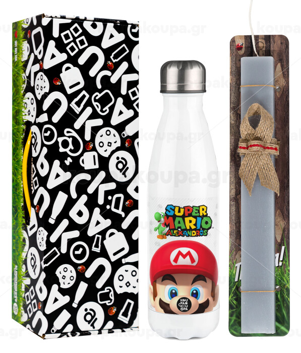 Super mario head, Easter candle, metallic white thermos bottle (500ml) & aromatic flat candle (30cm) (GRAY)
