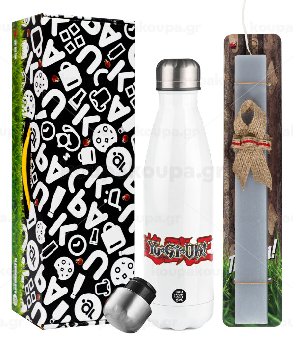 Yu-Gi-Oh, Easter candle, metallic white thermos bottle (500ml) & aromatic flat candle (30cm) (GRAY)
