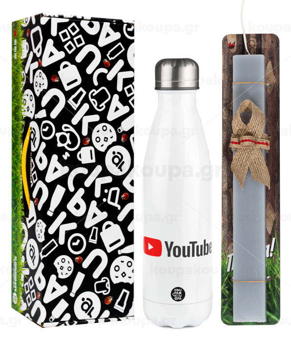 Youtube, Easter candle, metallic white thermos bottle (500ml) & aromatic flat candle (30cm) (GRAY)