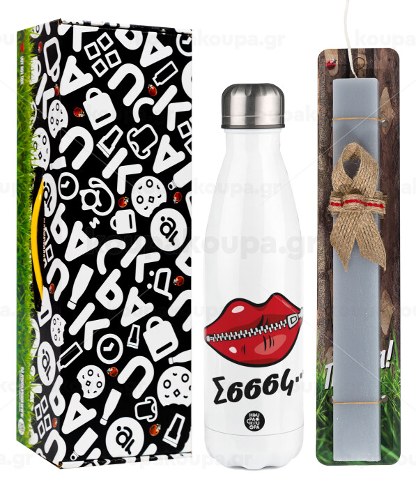 Σσσσς..., Easter candle, metallic white thermos bottle (500ml) & aromatic flat candle (30cm) (GRAY)
