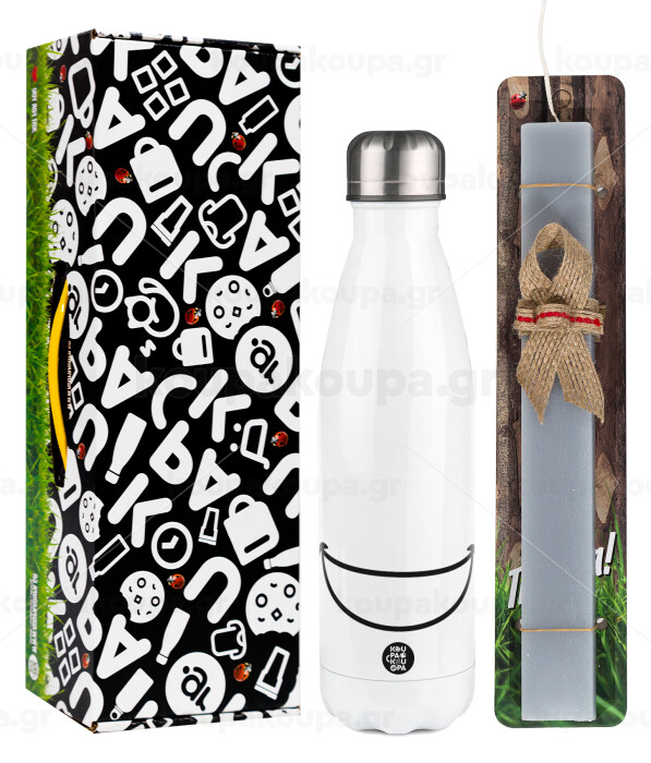 Big Smile, Easter candle, metallic white thermos bottle (500ml) & aromatic flat candle (30cm) (GRAY)
