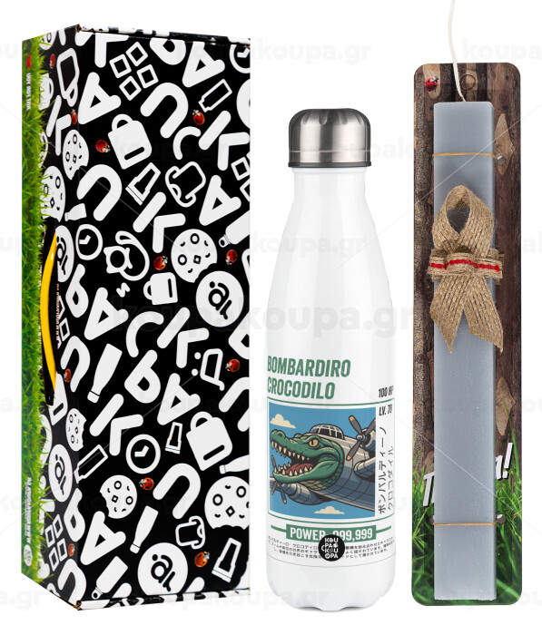 Bombardiro Crocodilo, Easter candle, metallic white thermos bottle (500ml) & aromatic flat candle (30cm) (GRAY)
