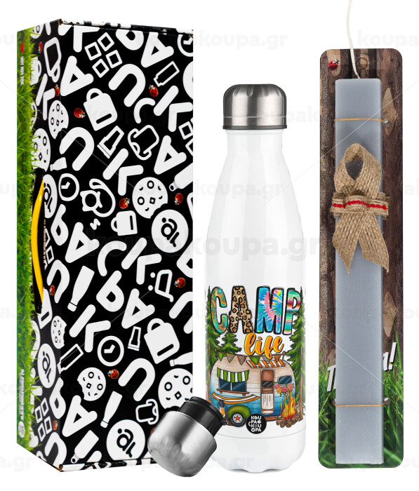 Camp Life, Easter candle, metallic white thermos bottle (500ml) & aromatic flat candle (30cm) (GRAY)