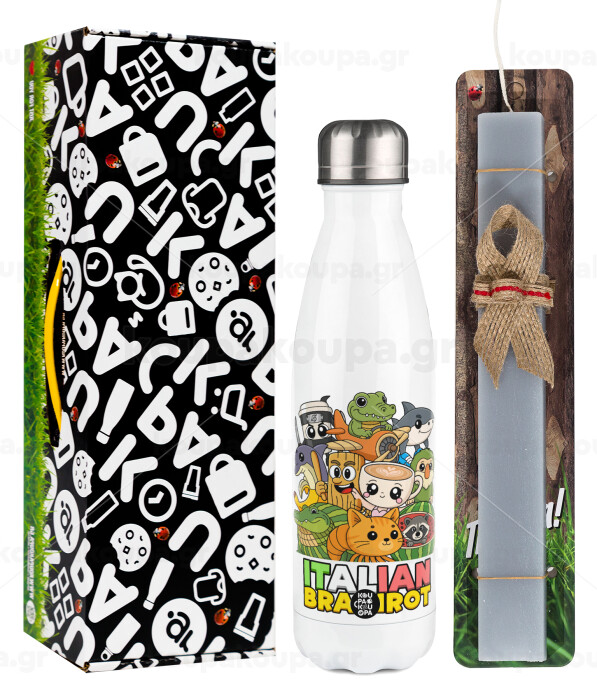 Italian Brainrot friends, Easter candle, metallic white thermos bottle (500ml) & aromatic flat candle (30cm) (GRAY)