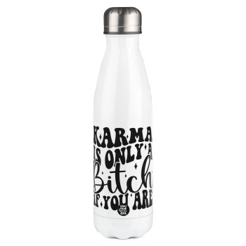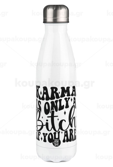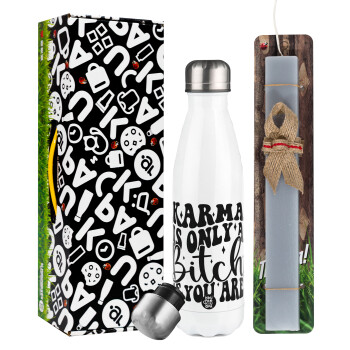 Karma is Only A Bitch if You Are, Easter candle, metallic white thermos bottle (500ml) & aromatic flat candle (30cm) (GRAY)