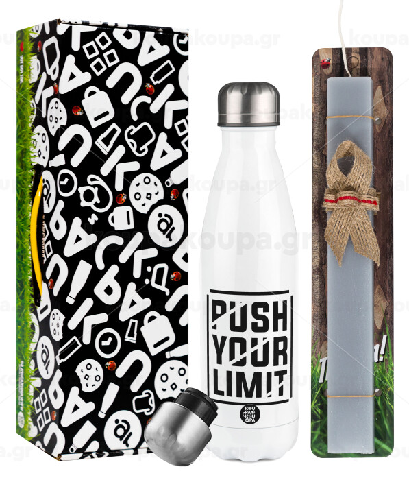 Push your limit, Easter candle, metallic white thermos bottle (500ml) & aromatic flat candle (30cm) (GRAY)
