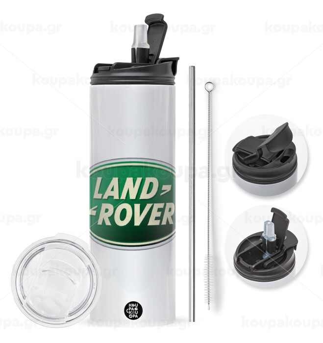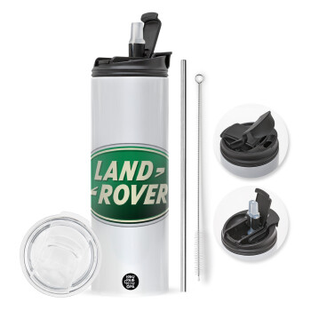 Land Rover, Easter candle,Travel Tumbler 2 Lids, with metal straw & cleaning brush & aromatic flat candle (30cm) (BLUE)