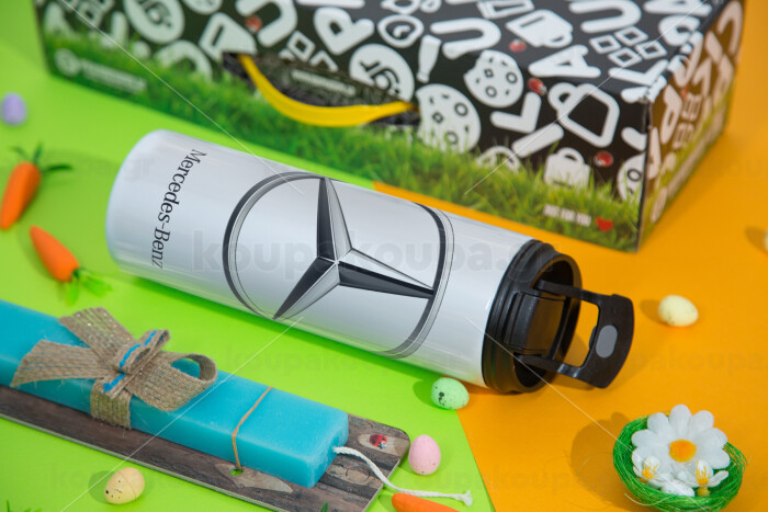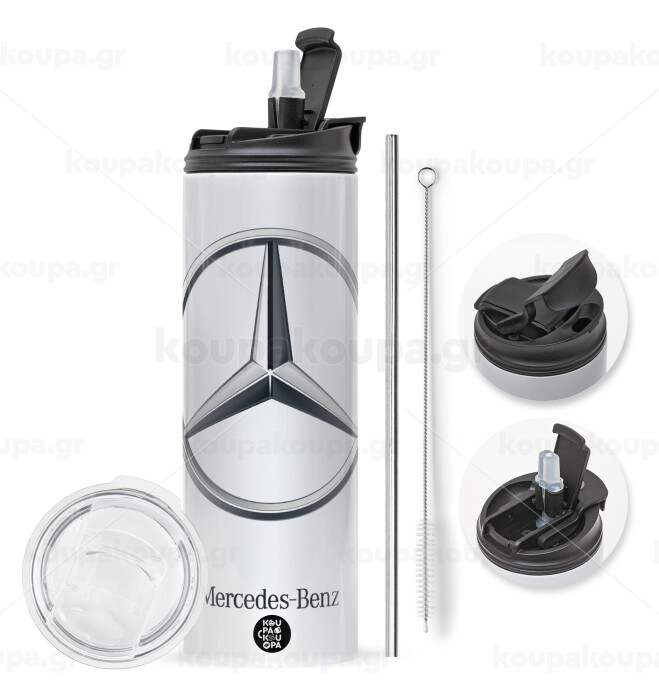mercedes, Easter candle,Travel Tumbler 2 Lids, with metal straw & cleaning brush & aromatic flat candle (30cm) (BLUE)