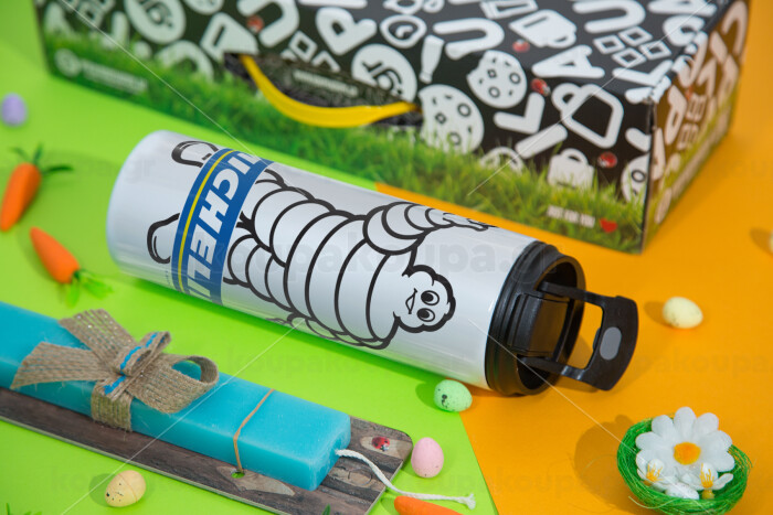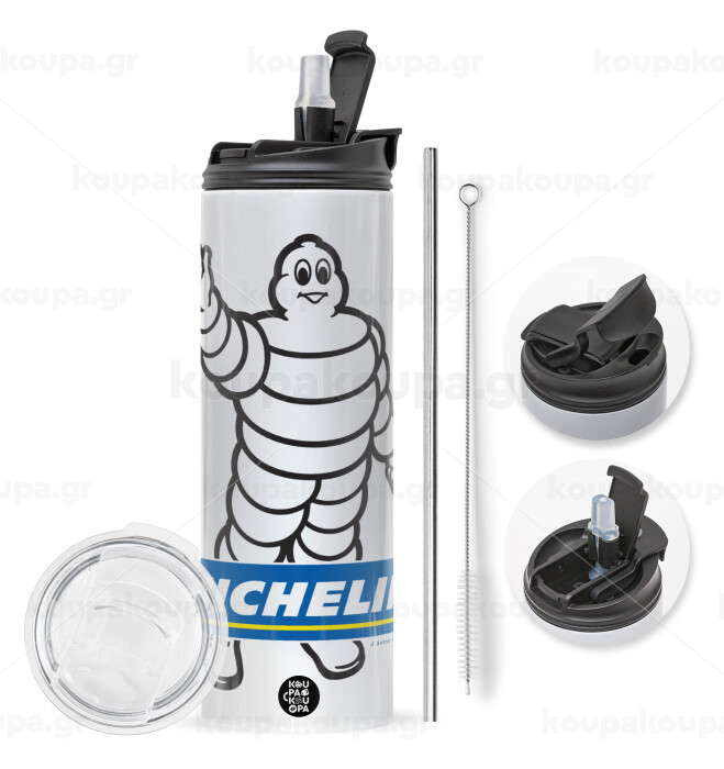 Michelin, Easter candle,Travel Tumbler 2 Lids, with metal straw & cleaning brush & aromatic flat candle (30cm) (BLUE)