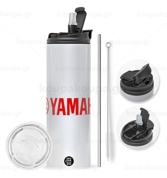Yamaha, Easter candle,Travel Tumbler 2 Lids, with metal straw & cleaning brush & aromatic flat candle (30cm) (BLUE)