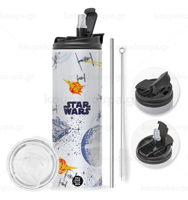 Star wars drawing, Easter candle,Travel Tumbler 2 Lids, with metal straw & cleaning brush & aromatic flat candle (30cm) (BLUE)