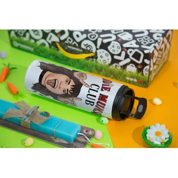 Eddie Munson, Hellfire CLub, Stranger Things, Easter candle,Travel Tumbler 2 Lids, with metal straw & cleaning brush & aromatic flat candle (30cm) (BLUE)