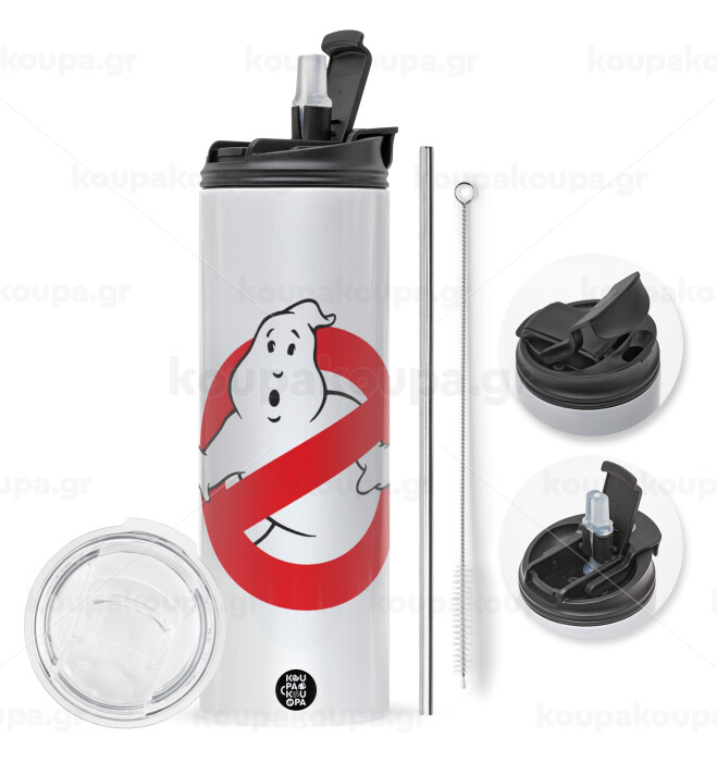The Ghostbusters, Easter candle,Travel Tumbler 2 Lids, with metal straw & cleaning brush & aromatic flat candle (30cm) (BLUE)