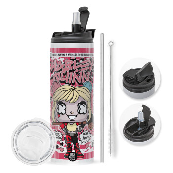 Harley Quinn (Χάρλεϊ Κουίν), Easter candle,Travel Tumbler 2 Lids, with metal straw & cleaning brush & aromatic flat candle (30cm) (BLUE)
