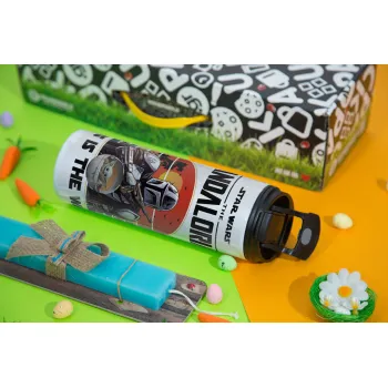 Mandalorian, Easter candle,Travel Tumbler 2 Lids, with metal straw & cleaning brush & aromatic flat candle (30cm) (BLUE)