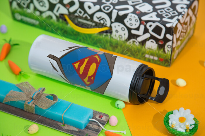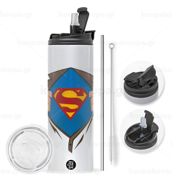 Superman hands, Easter candle,Travel Tumbler 2 Lids, with metal straw & cleaning brush & aromatic flat candle (30cm) (BLUE)