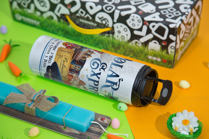 The Polar Express, Easter candle,Travel Tumbler 2 Lids, with metal straw & cleaning brush & aromatic flat candle (30cm) (BLUE)