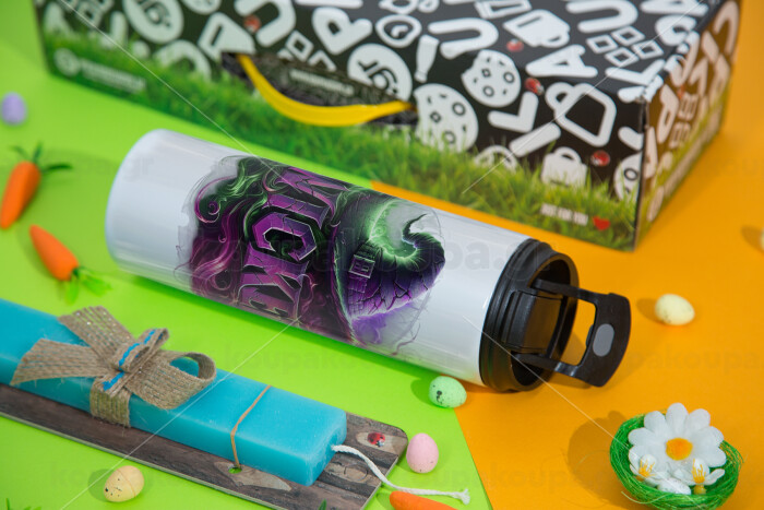 Wicked, Easter candle,Travel Tumbler 2 Lids, with metal straw & cleaning brush & aromatic flat candle (30cm) (BLUE)