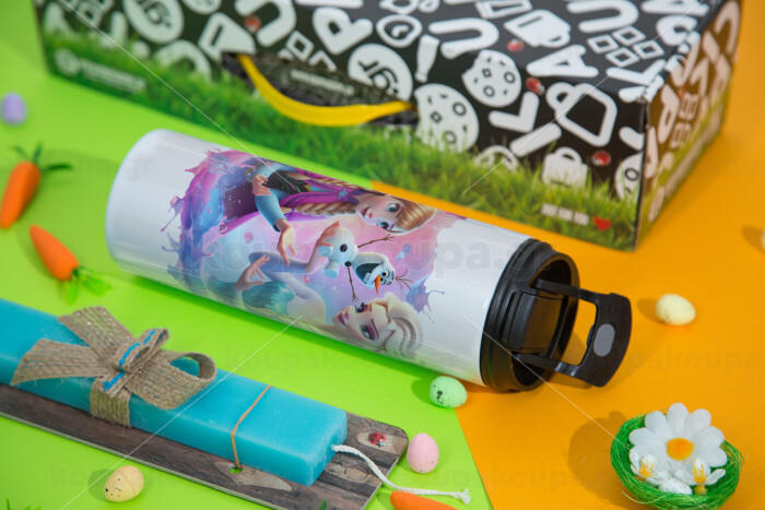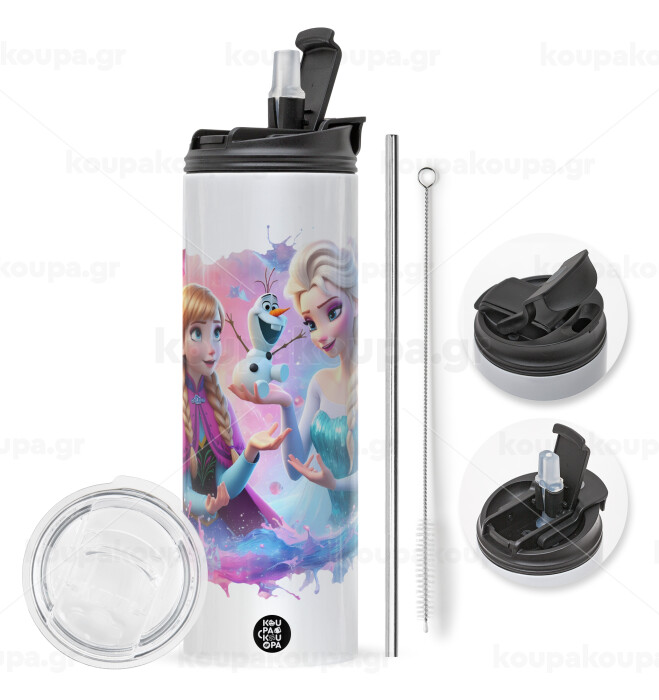Elsa & Anna Princess, Easter candle,Travel Tumbler 2 Lids, with metal straw & cleaning brush & aromatic flat candle (30cm) (BLUE)
