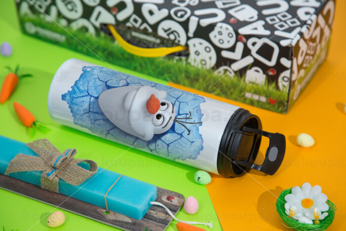 Frozen Olaf, Easter candle,Travel Tumbler 2 Lids, with metal straw & cleaning brush & aromatic flat candle (30cm) (BLUE)