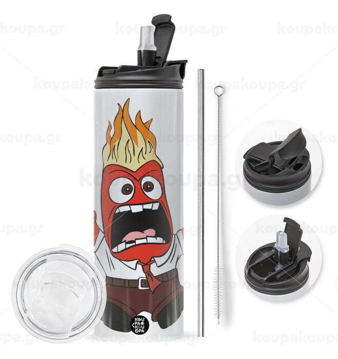 Inside Out Angry, Easter candle,Travel Tumbler 2 Lids, with metal straw & cleaning brush & aromatic flat candle (30cm) (BLUE)