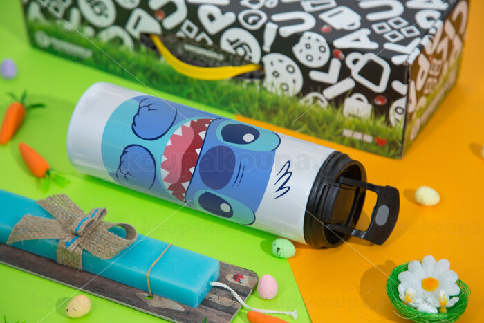 Lilo & Stitch blue, Easter candle,Travel Tumbler 2 Lids, with metal straw & cleaning brush & aromatic flat candle (30cm) (BLUE)