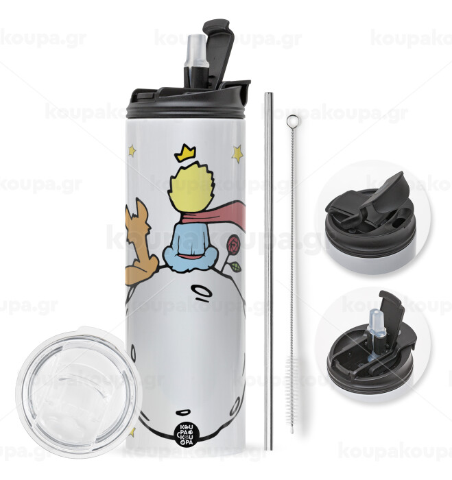 Little prince, Easter candle,Travel Tumbler 2 Lids, with metal straw & cleaning brush & aromatic flat candle (30cm) (BLUE)