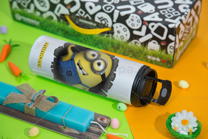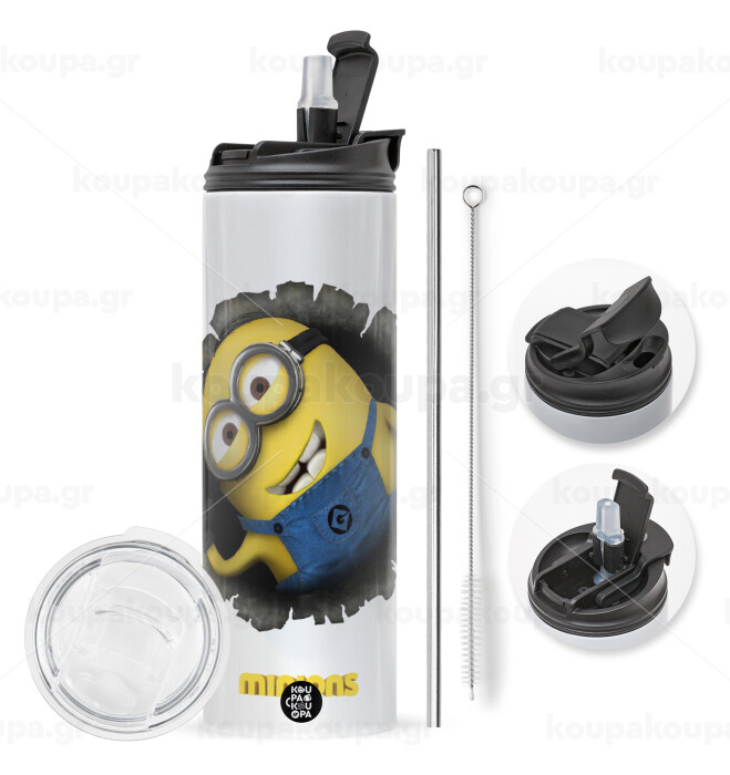 Minions hi, Easter candle,Travel Tumbler 2 Lids, with metal straw & cleaning brush & aromatic flat candle (30cm) (BLUE)
