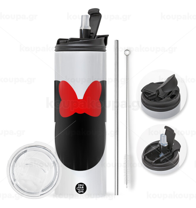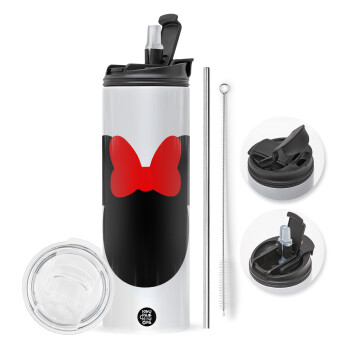 Minnie head, Easter candle,Travel Tumbler 2 Lids, with metal straw & cleaning brush & aromatic flat candle (30cm) (BLUE)