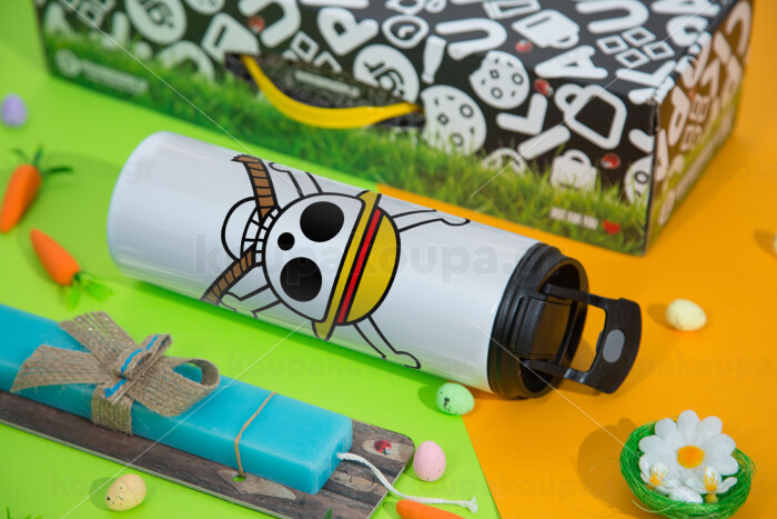 Onepiece skull, Easter candle,Travel Tumbler 2 Lids, with metal straw & cleaning brush & aromatic flat candle (30cm) (BLUE)