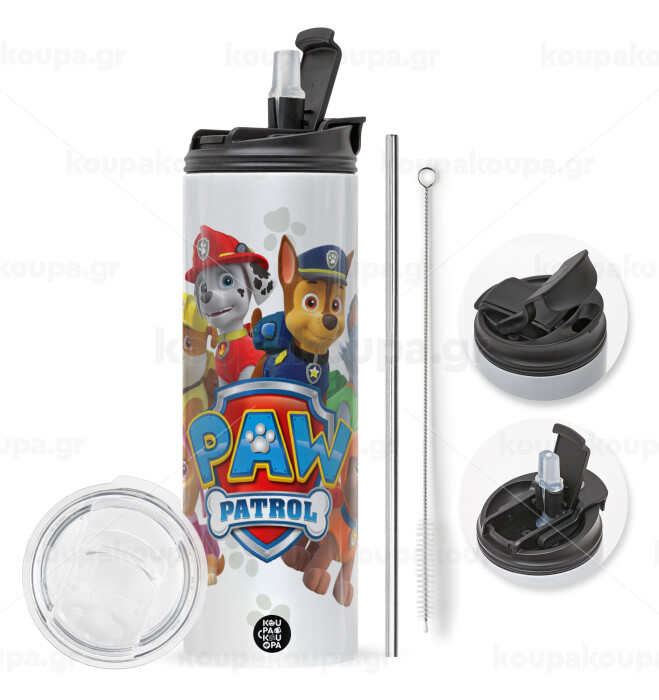 PAW patrol, Easter candle,Travel Tumbler 2 Lids, with metal straw & cleaning brush & aromatic flat candle (30cm) (BLUE)