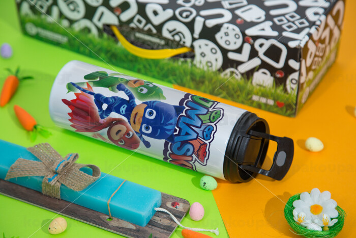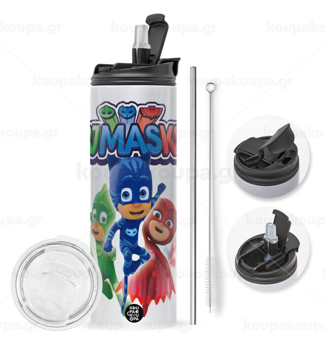 PJ masks, Easter candle,Travel Tumbler 2 Lids, with metal straw & cleaning brush & aromatic flat candle (30cm) (BLUE)