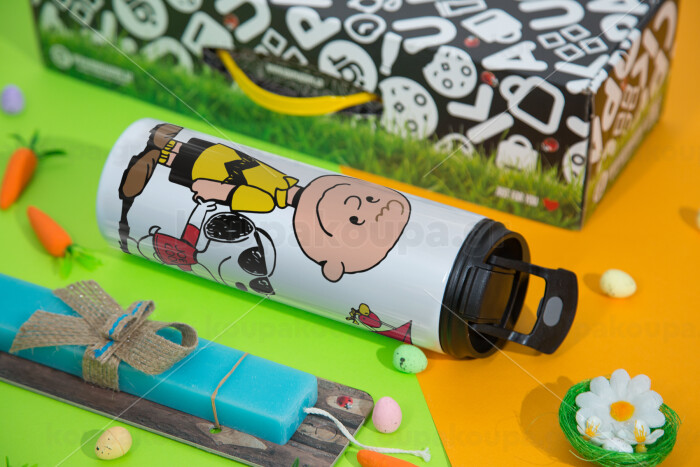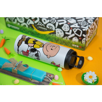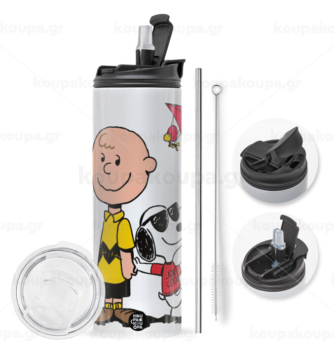 Snoopy & Joe, Easter candle,Travel Tumbler 2 Lids, with metal straw & cleaning brush & aromatic flat candle (30cm) (BLUE)