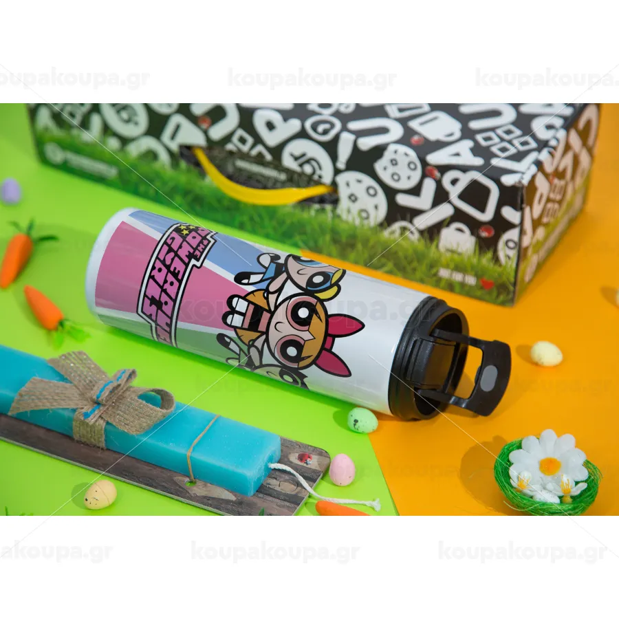 The powerpuff girls , Easter candle,Travel Tumbler 2 Lids, with metal straw & cleaning brush & aromatic flat candle (30cm) (BLUE)