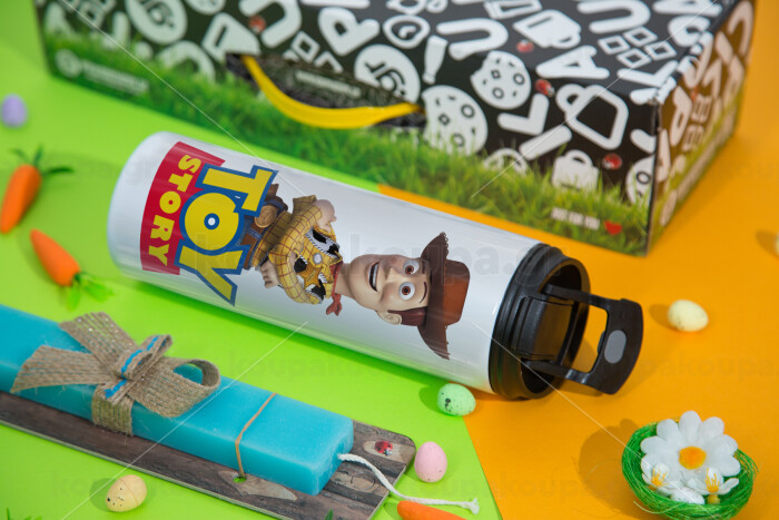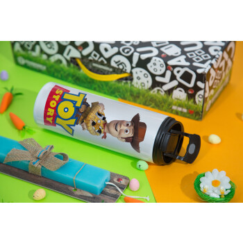 Woody cowboy, Easter candle,Travel Tumbler 2 Lids, with metal straw & cleaning brush & aromatic flat candle (30cm) (BLUE)