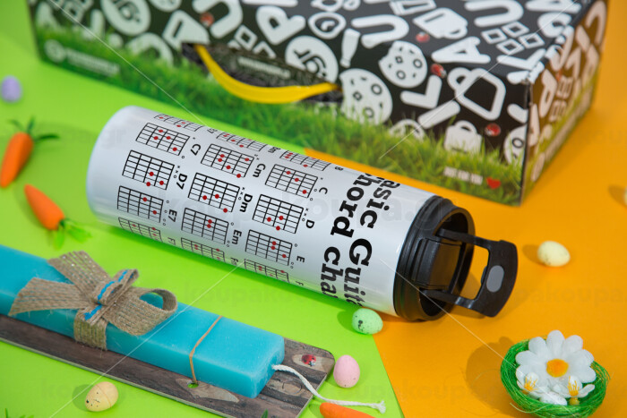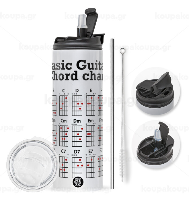 Guitar tabs, Easter candle,Travel Tumbler 2 Lids, with metal straw & cleaning brush & aromatic flat candle (30cm) (BLUE)