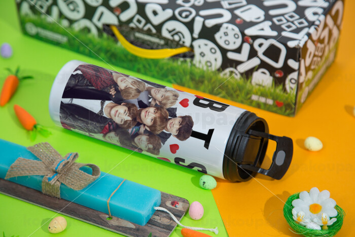 BTS hearts, Easter candle,Travel Tumbler 2 Lids, with metal straw & cleaning brush & aromatic flat candle (30cm) (BLUE)