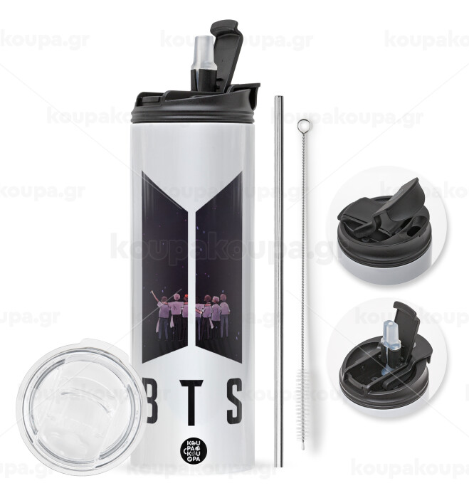 BTS, Easter candle,Travel Tumbler 2 Lids, with metal straw & cleaning brush & aromatic flat candle (30cm) (BLUE)