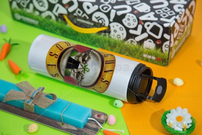 Guns N' Roses, Easter candle,Travel Tumbler 2 Lids, with metal straw & cleaning brush & aromatic flat candle (30cm) (BLUE)