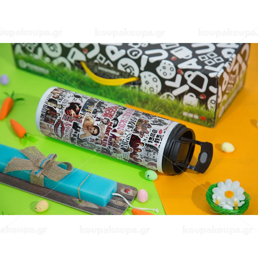 Maneskin stickers, Easter candle,Travel Tumbler 2 Lids, with metal straw & cleaning brush & aromatic flat candle (30cm) (BLUE)