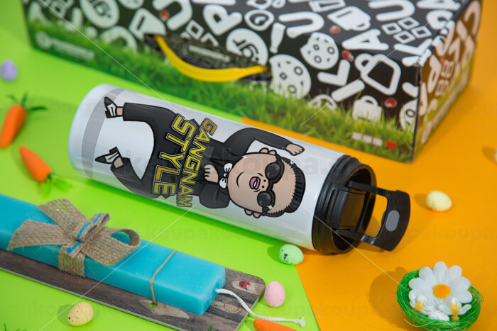 PSY - GANGNAM STYLE, Easter candle,Travel Tumbler 2 Lids, with metal straw & cleaning brush & aromatic flat candle (30cm) (BLUE)