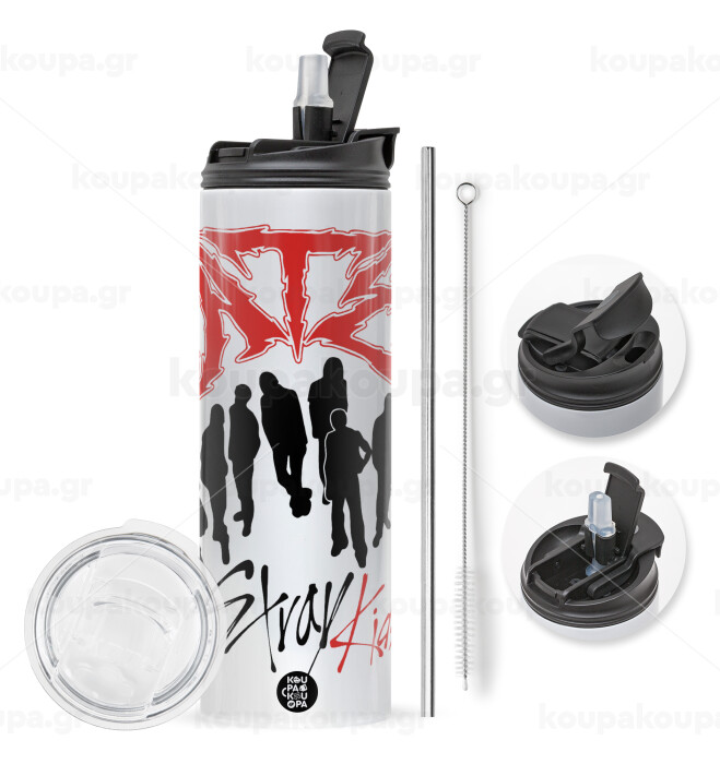 Stray Kids Boy band, Easter candle,Travel Tumbler 2 Lids, with metal straw & cleaning brush & aromatic flat candle (30cm) (BLUE)