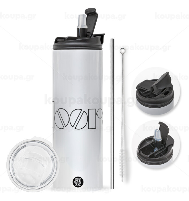 The Doors, Easter candle,Travel Tumbler 2 Lids, with metal straw & cleaning brush & aromatic flat candle (30cm) (BLUE)